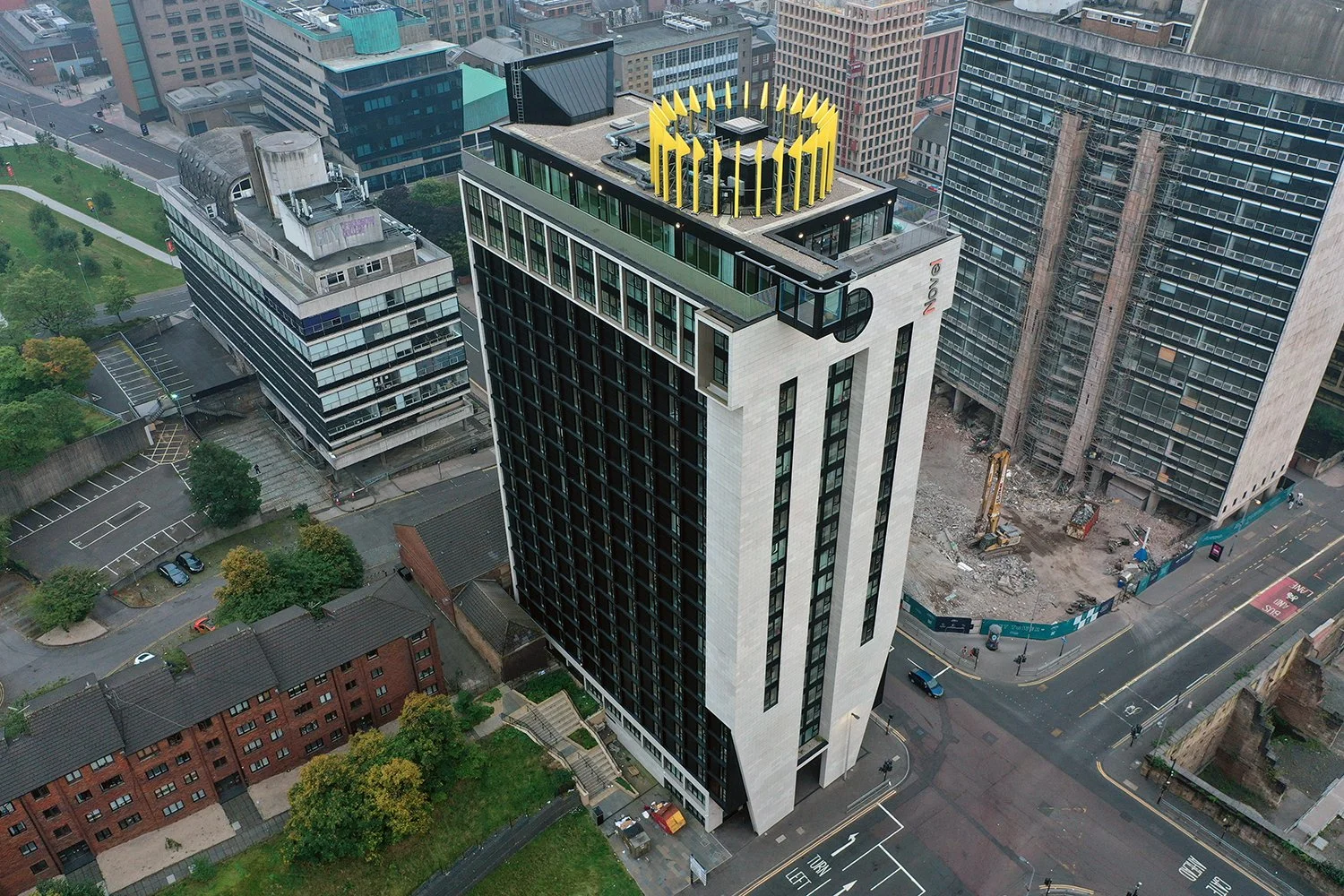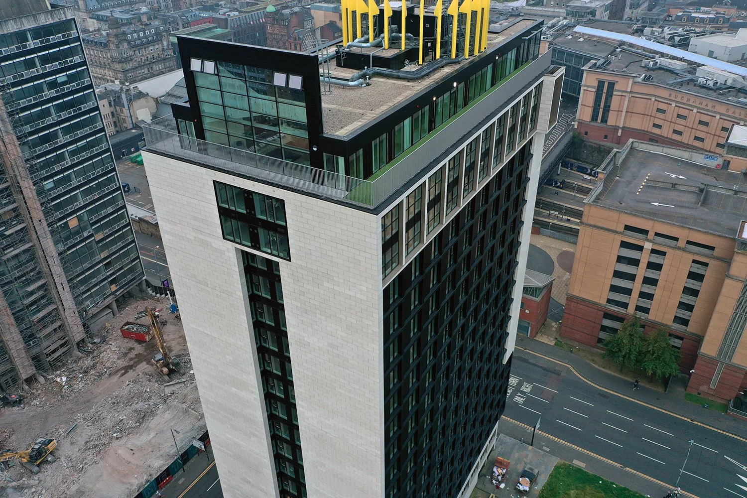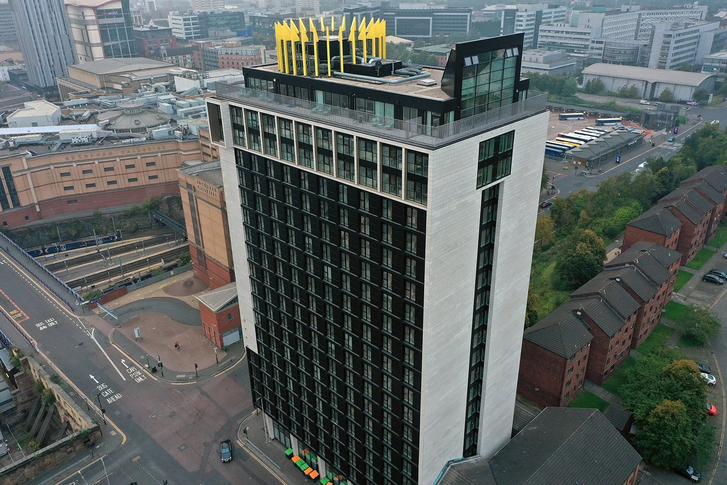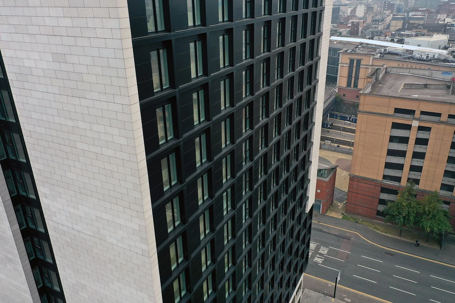 Metal Tech installed SFS, Aluminium recess fixed cladding, 70mm rainscreen stone and 30mm Generix stone.
