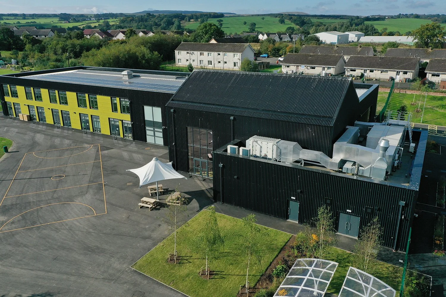 This state of the art two-storey school, which is a key part of East Ayrshire Council’s ten-year plan to improve the school estate has have nine classrooms, four supported learning spaces and specially designed outdoor learning zones, play areas and a new artificial sports pitch. Metal Tech scope of works included 1200m² of SFS, 1100m² of Euroseam Standing Seam roof and 1900m² Fibre Cement Rainscreen Wall Cladding. Fully designed and managed by our internal team.