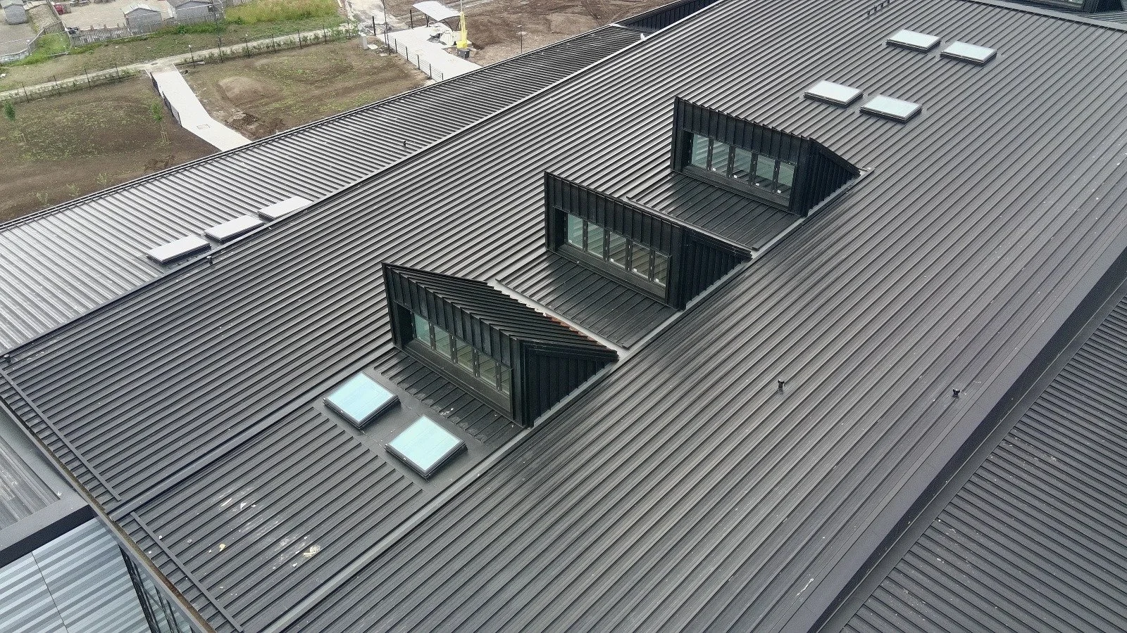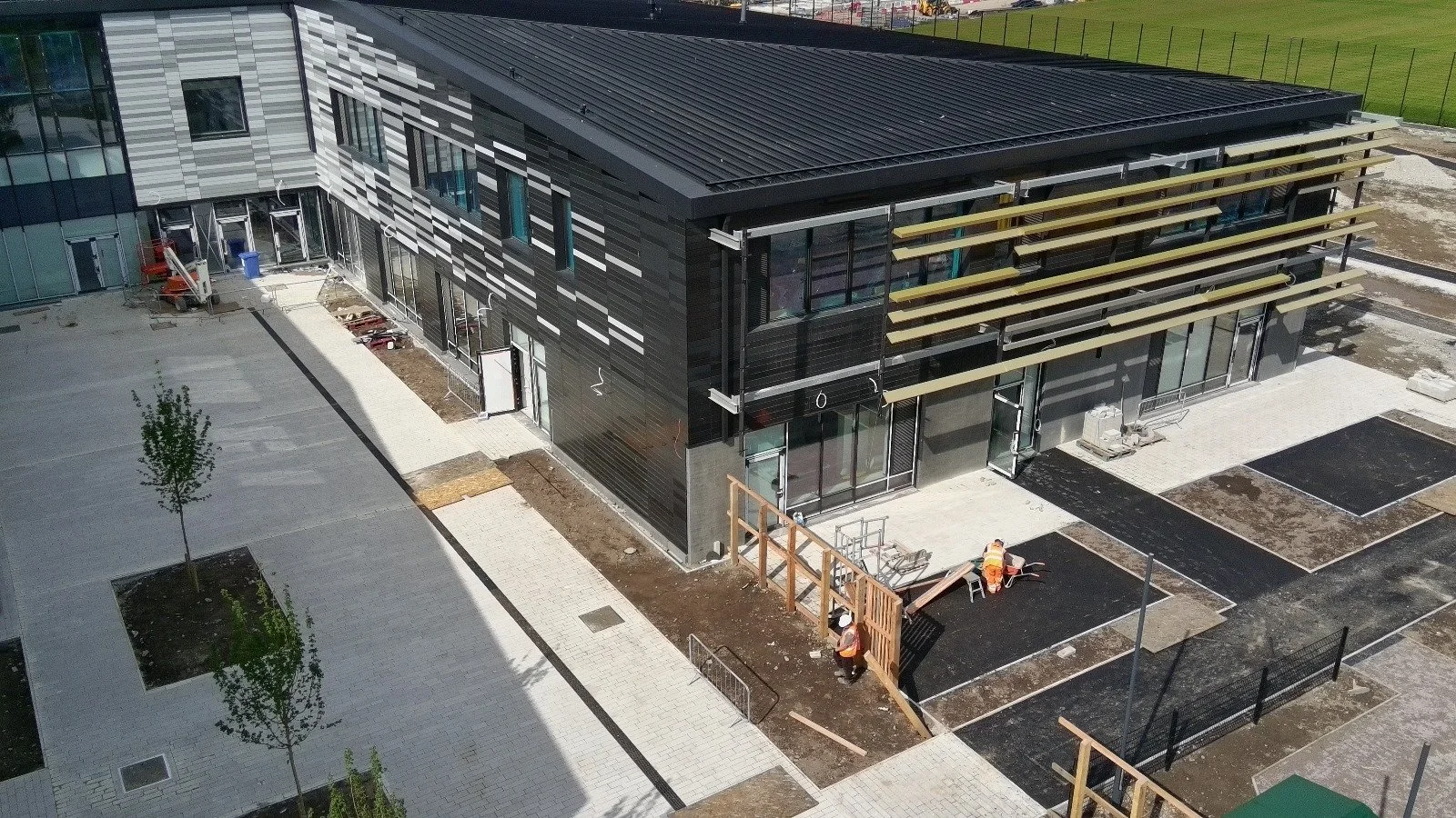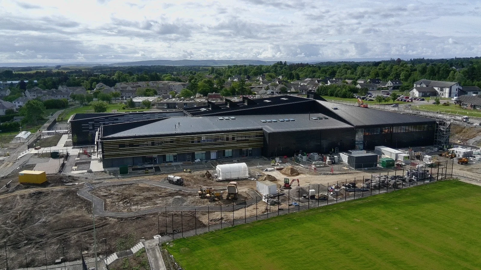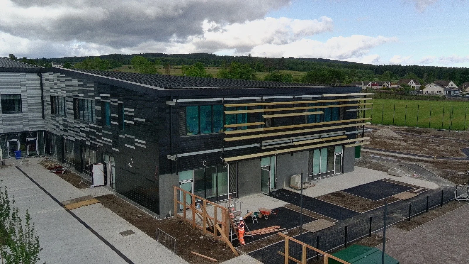 This Passivhaus Project is in Inverness is to relocate Tain Royal Academy, Craighill and Knockbreck Primary Schools and St Duthus School to a single campus on a site at Craighill in Tain. Our works includes the install of approximately 7500 m² of Standing Seam Roofing and approximately 2300 m² of Aluminium Plank Rainscreen Cladding.